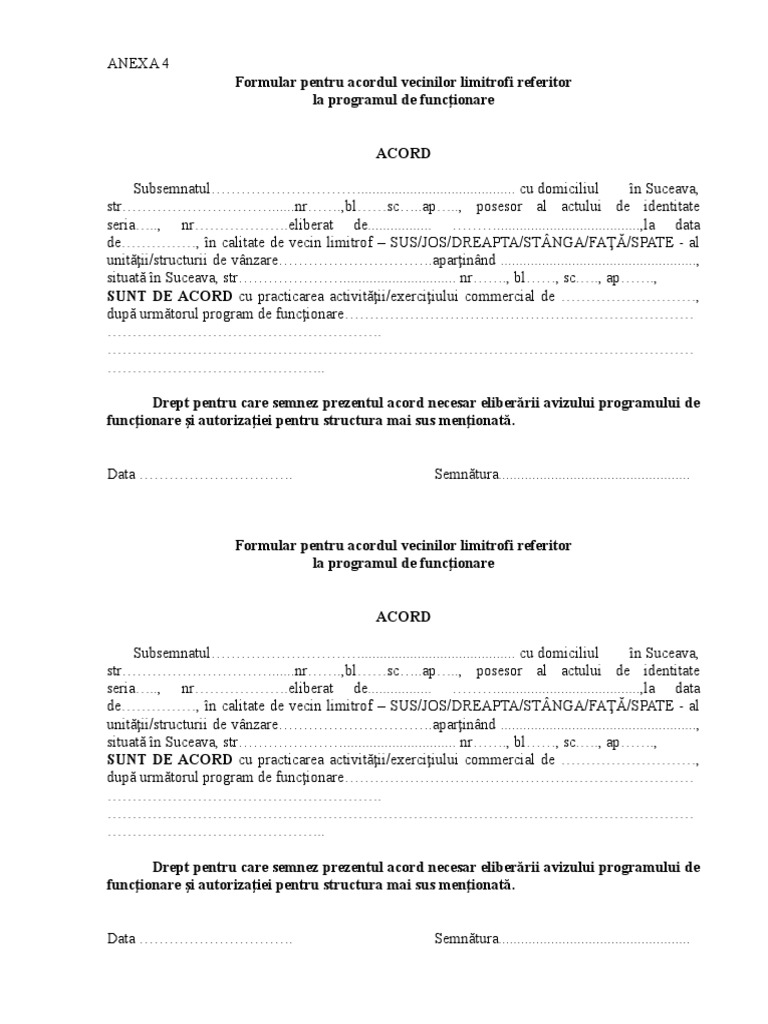 Anexa 4 Acordul Vecinilor Referitor La Programul De Functionare