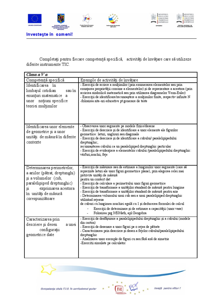 Competente Specifice Si Exemple De Activitati De Invatare