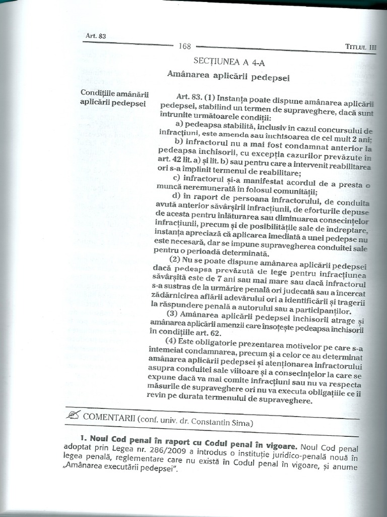 81 cod penal suspendă condiţionat executarea. 83 condiţiile amânării aplicării pedepsei amânarea aplicării pedepsei individualizarea pedepselor noul cod penal actualizat 2014 legea nr. 83 do código penal decreto lei 2848 40. Acesta este un fragment din codul penal din 1968 cumpărați documentul în formă actualizată sau alegeți un abonament lege5 care permite accesul la orice formă actualizată.