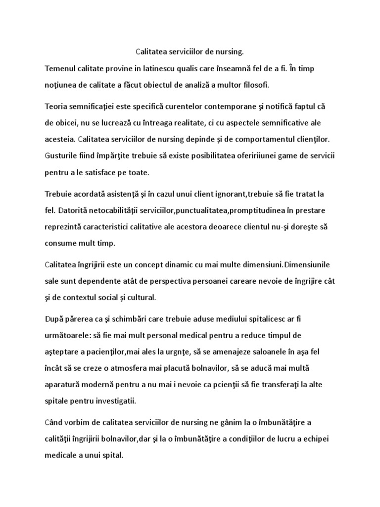 Calitatea Serviciilor De Nursing Doc Pdf Document