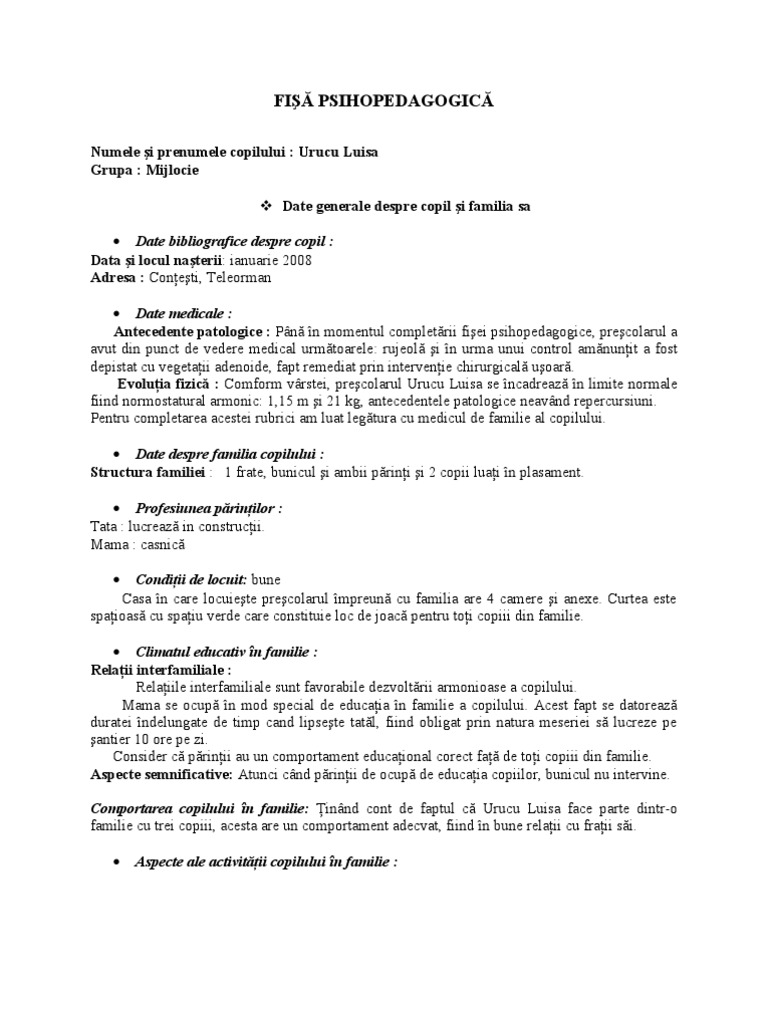 Fisă Psihopedagogică