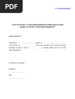 Cerere De I Ncetare A Contractului Individual De Munc 03 Prin Acordul P 03rcilor