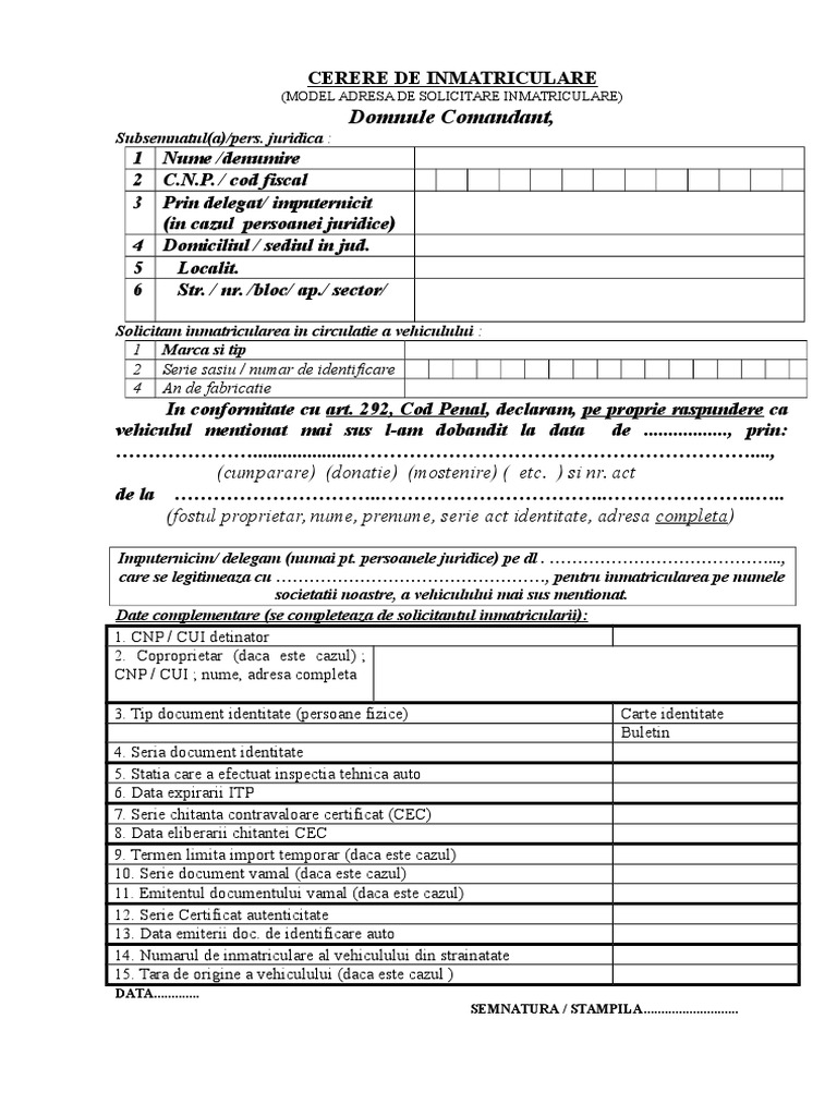 Cerere Inmatriculare Transcriere Duplicat Certificat Inmatriculare Radiere Autorizare Provizorie Pdf