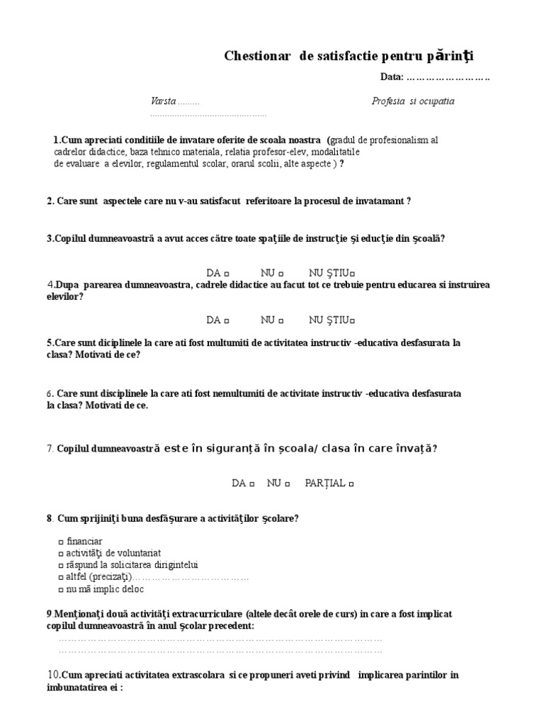 Chestionar Satisfactie Parinti