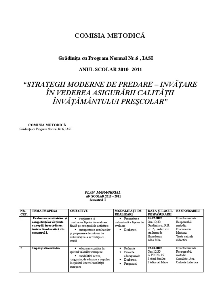 Comisia Metodica A Educatoarelor Portofoliu Pdf