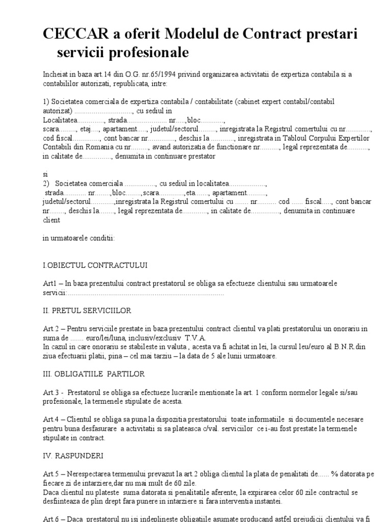 Ceccar A Oferit Modelul De Contract Prestari Servicii Profesionale