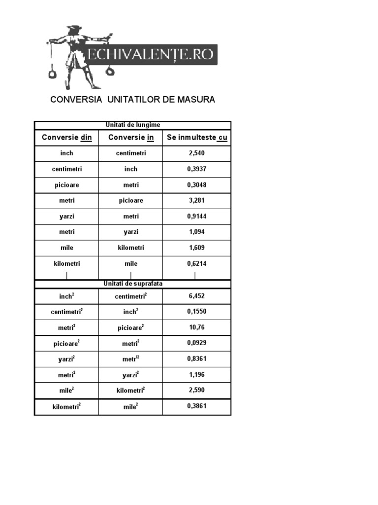 Conversia Unitatilor De Masura Echivalente Si Unitati De Masura