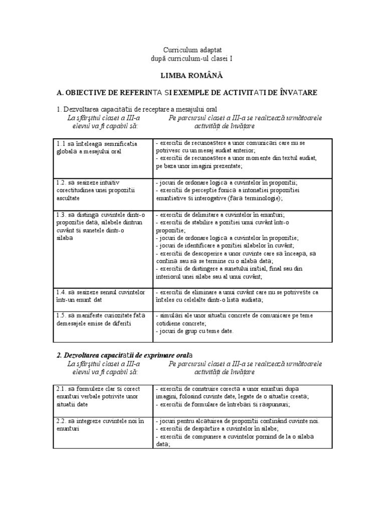 Curriculum Adaptat Clasa A Iiia
