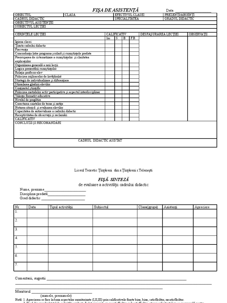 Doc Model Fisa De Asistenta La Oră Vica Bejan Academia Edu