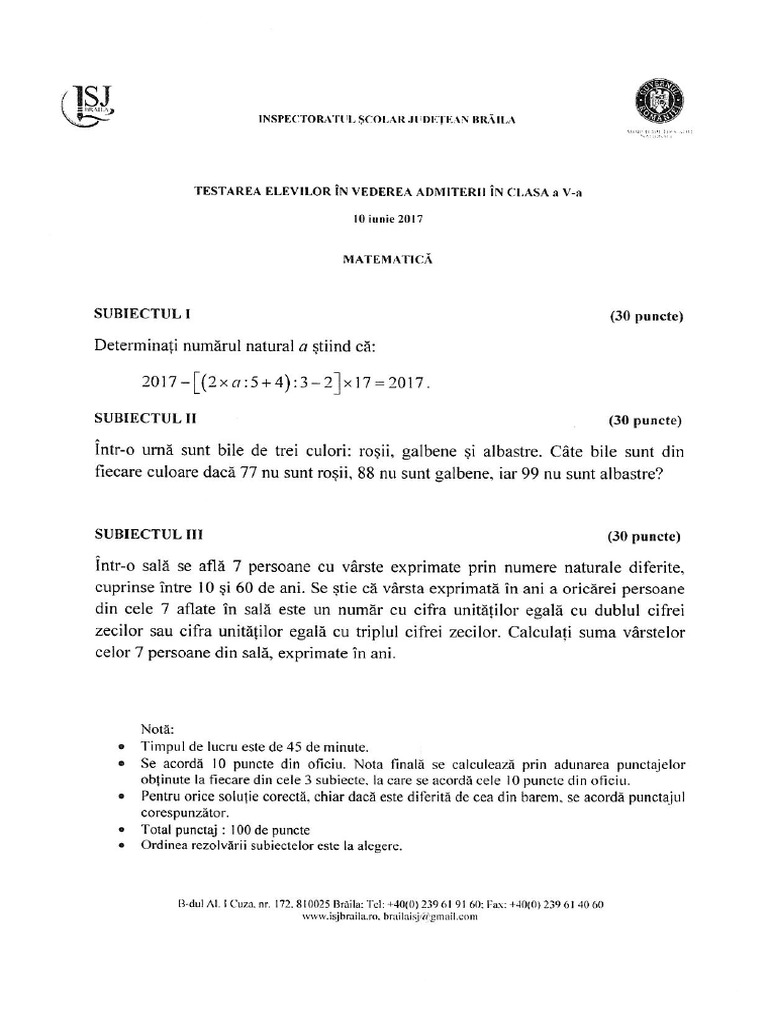 Subiect Matematica 2017 Pdf