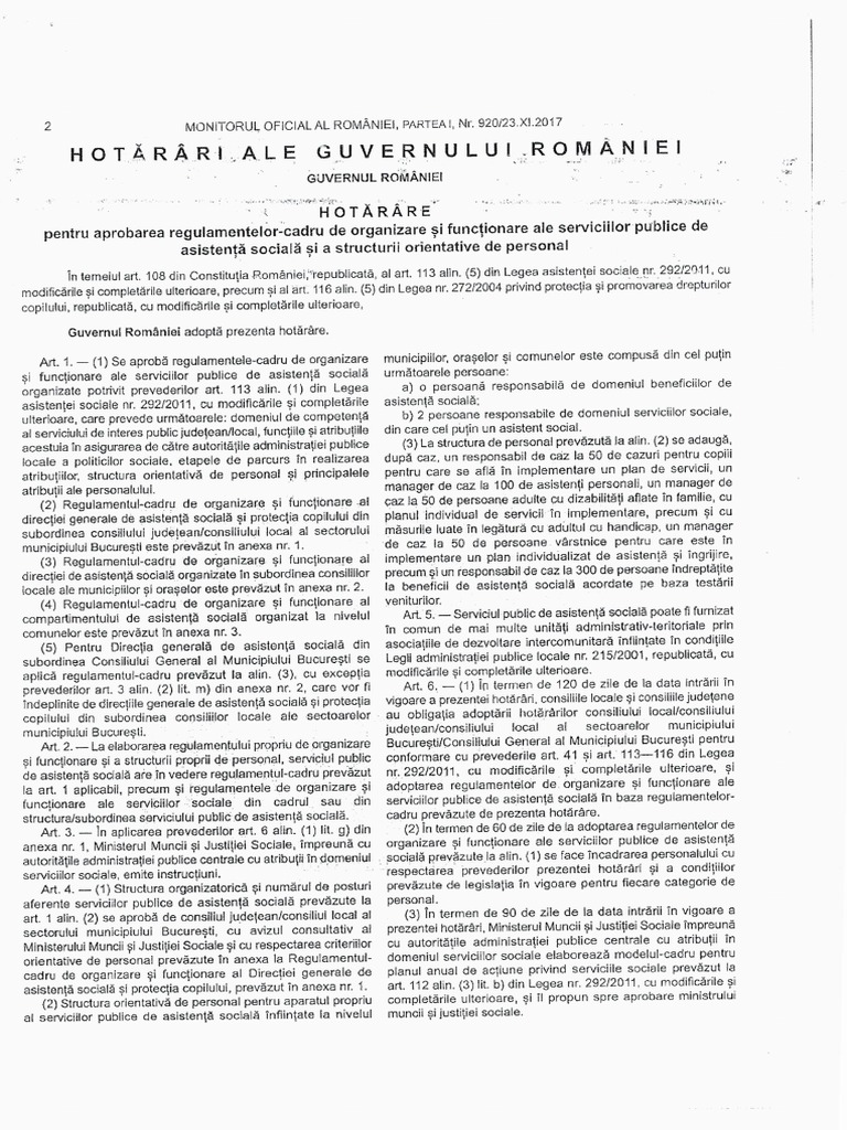 Hg Din 23 11 2017 Pt Aprobare Reg Cadru Functionare Servicii Publice Asistenta Sociala24112017