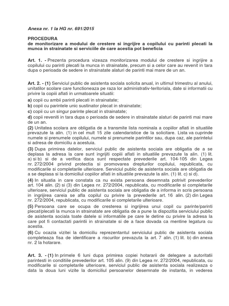 Hg 691 Din 2015 Si Anexe Proceduri Copil Cu Parinti Plecati La Munca