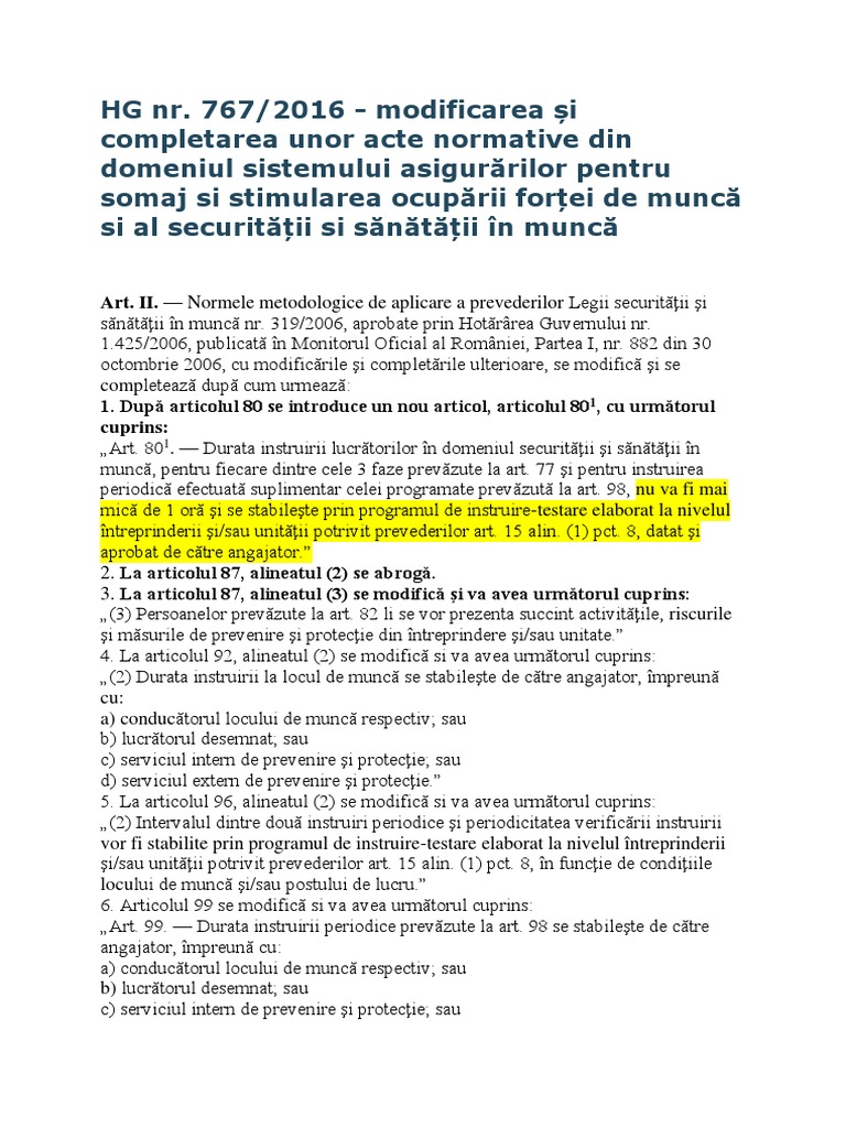 Ce Modificari A Adus Hg Nr 767 2016 In Domeniul Securitatii Si Sanatatii In Munca