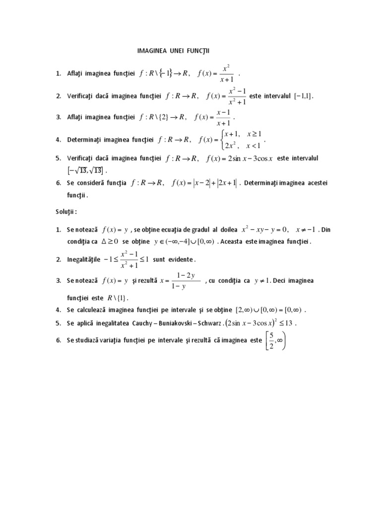 Formule Matematica Functii Imaginea Unei Functii