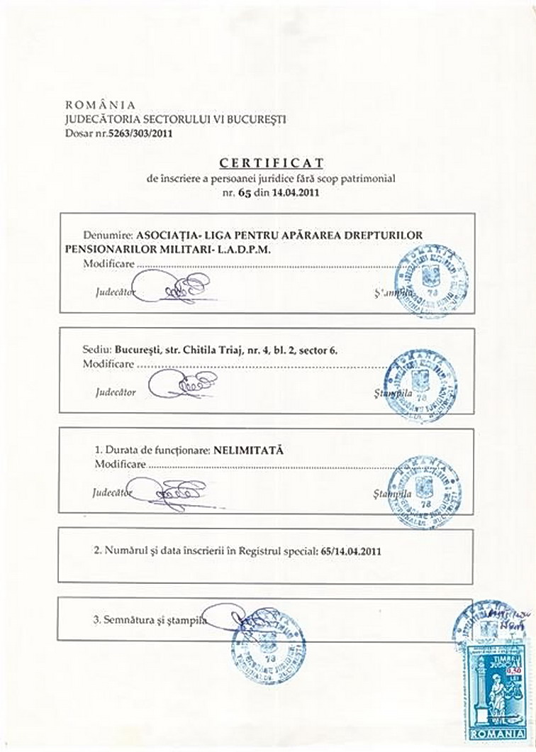 Liga Pentru Apararea Drepturilor Pensionarilor Militari Este Infiintata Si Functioneaza Legal