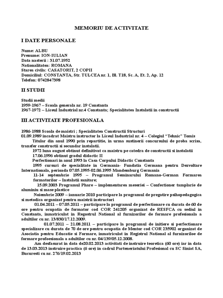196953245 0 Memoriu De Activitate Inscriere Gradul I Copy