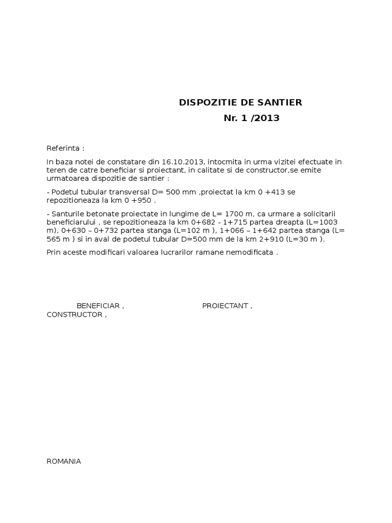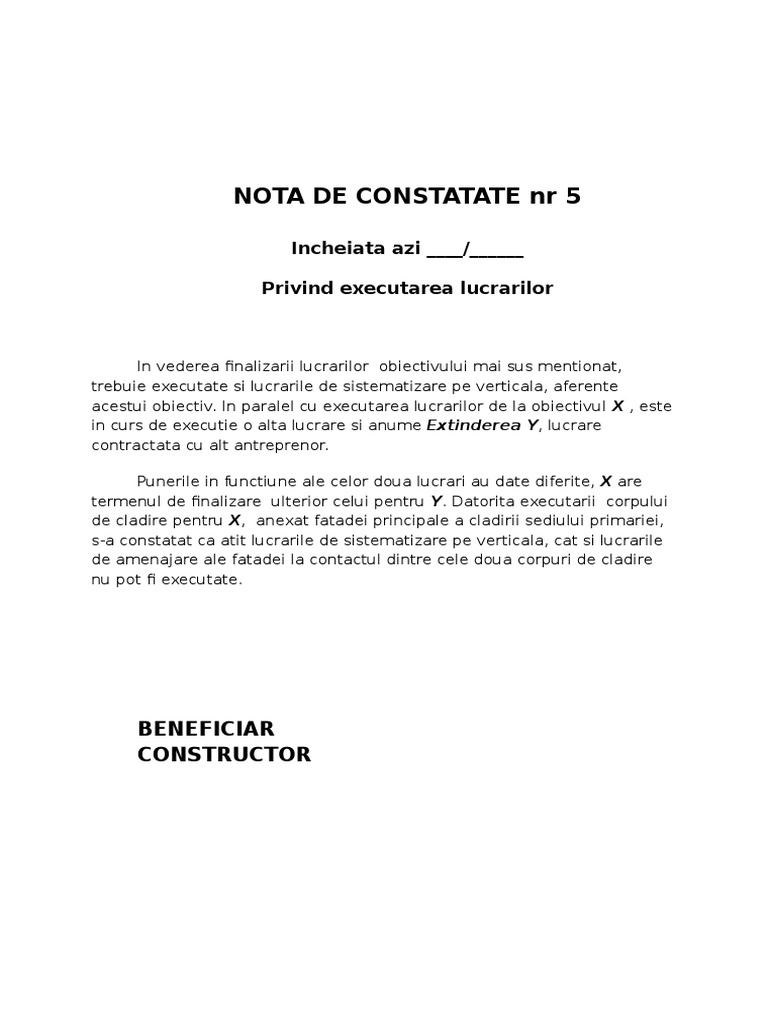Model Nota De Constatare Santier