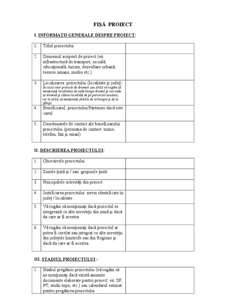 Model Proiect Fonduri Europene