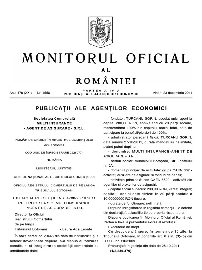 Monitorul Oficial Partea A Iv A Direct In Sintact Ro Acte Ale Societatilor