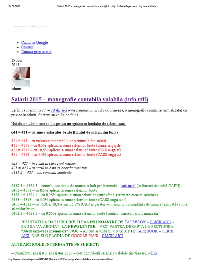 Monografie Contabilă Salarii Valabilă 2015