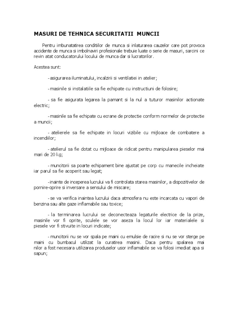 Masuri De Tehnica Securitatii Muncii