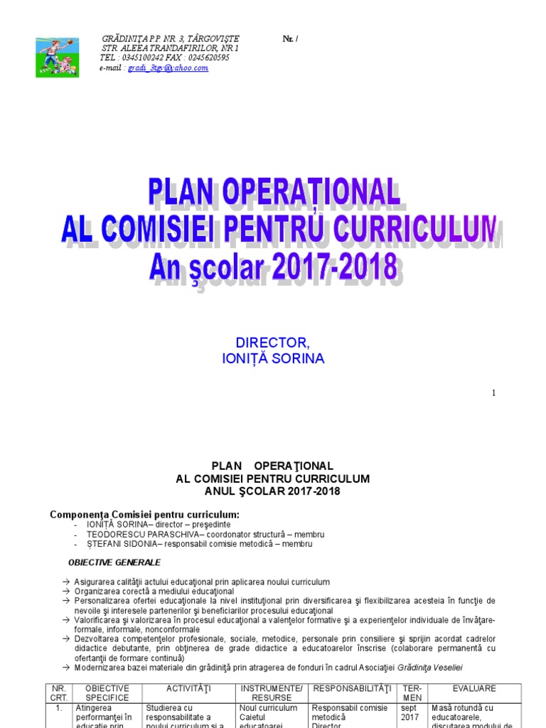 Plan Comisia Pentru Curriculum 2017 2018 Doc