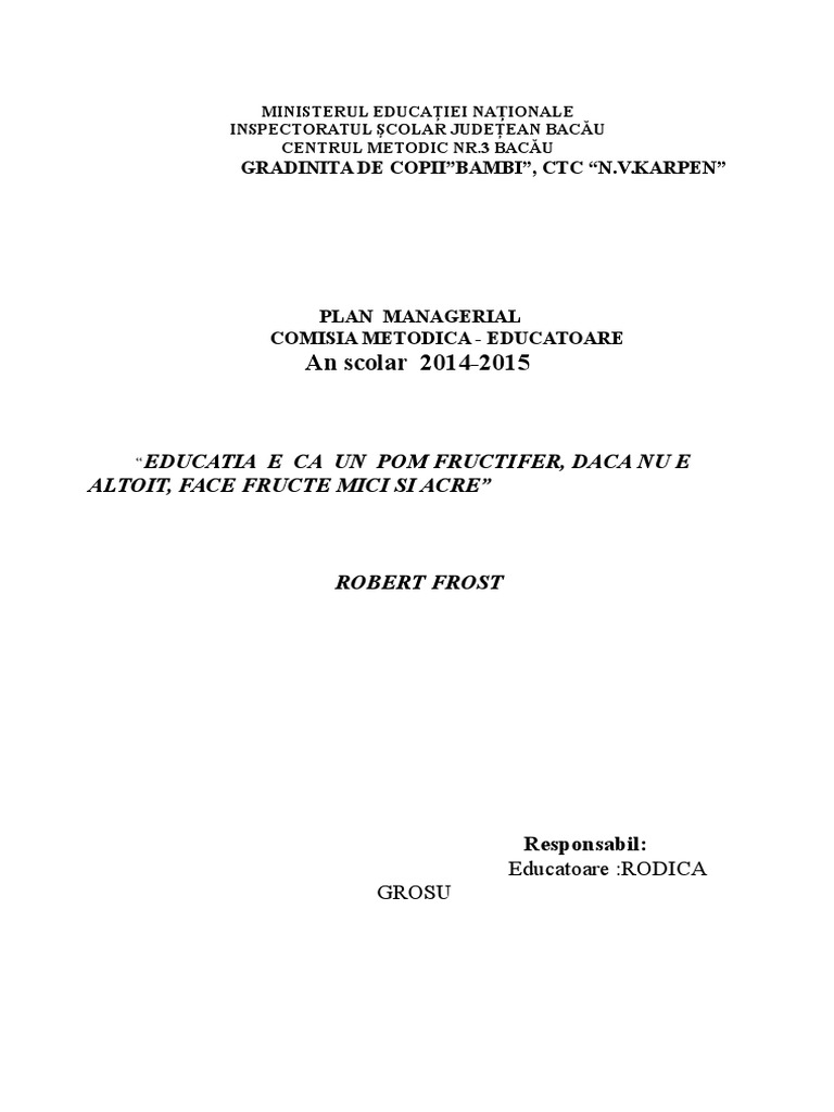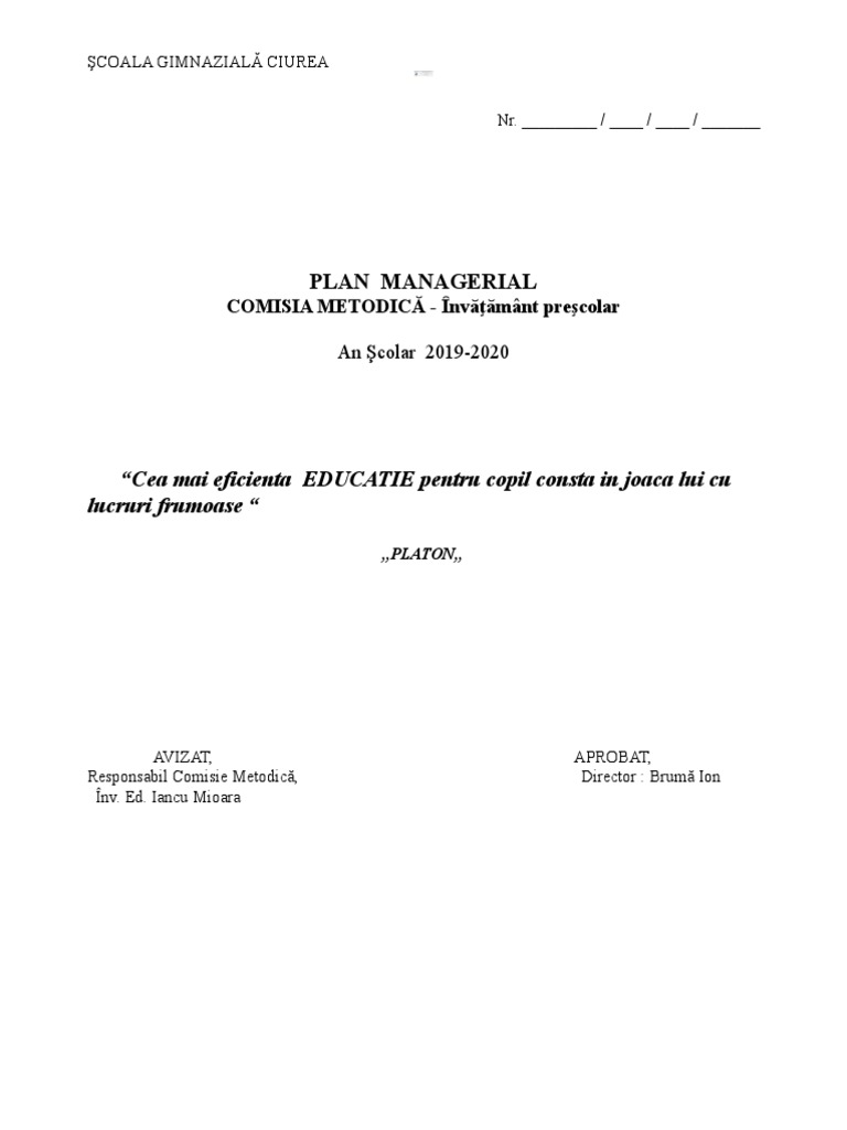 Plan Managerial Comisie Metodica Educatoare 2019 2020