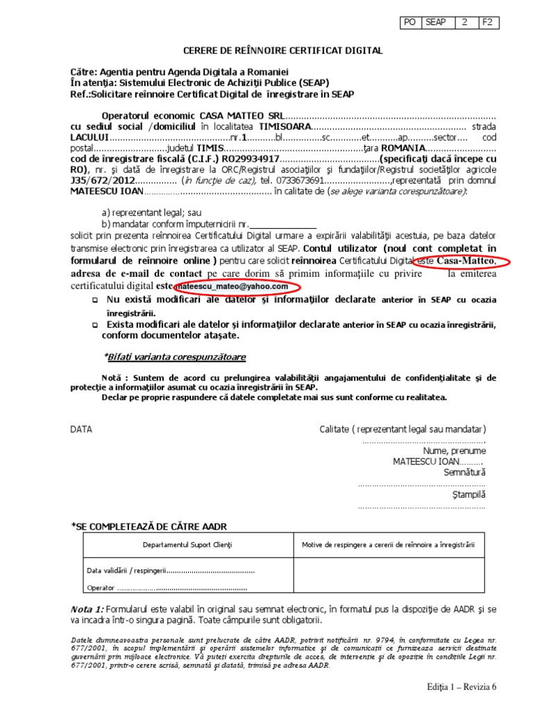 Cerere Reinoire Certificat Casa Matteo Pdf