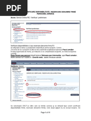 Cerere De Verificare Disponibilitate Rezervare Denumire Firmă Persoane Juridice Acces Servicii Online Rc Verificari Preliminare