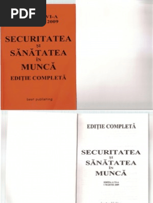 Securitatea Si Sanatatea In Munca Editia A Vi A 1 Martie 2009 Editie Completa De Cristian
